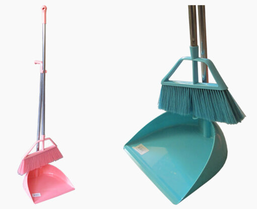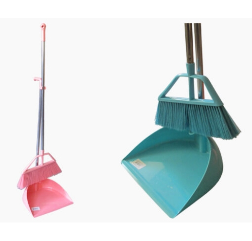 Prügikühvel ja hari. Kühvli mõõdud 29,5×24,5cm. Harjavars 85cm.